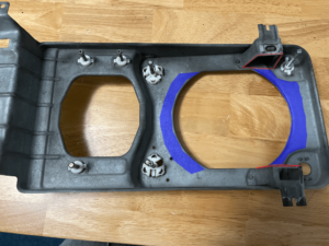 • Remove the entire lip of the circle or more to create enough space for the headlight to fit. An angle grinder or cutoff wheel works great.