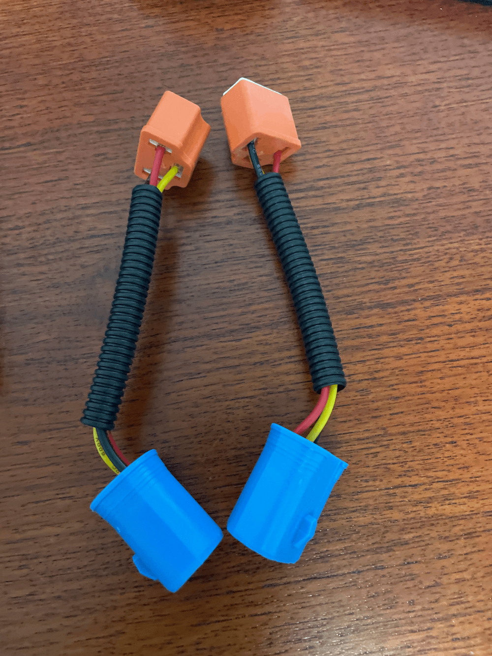 A set of wiring adapters to easily convert your Vanagon 9007 headlight wiring to connect effortlessly to the H4 socket on a LED headlight.